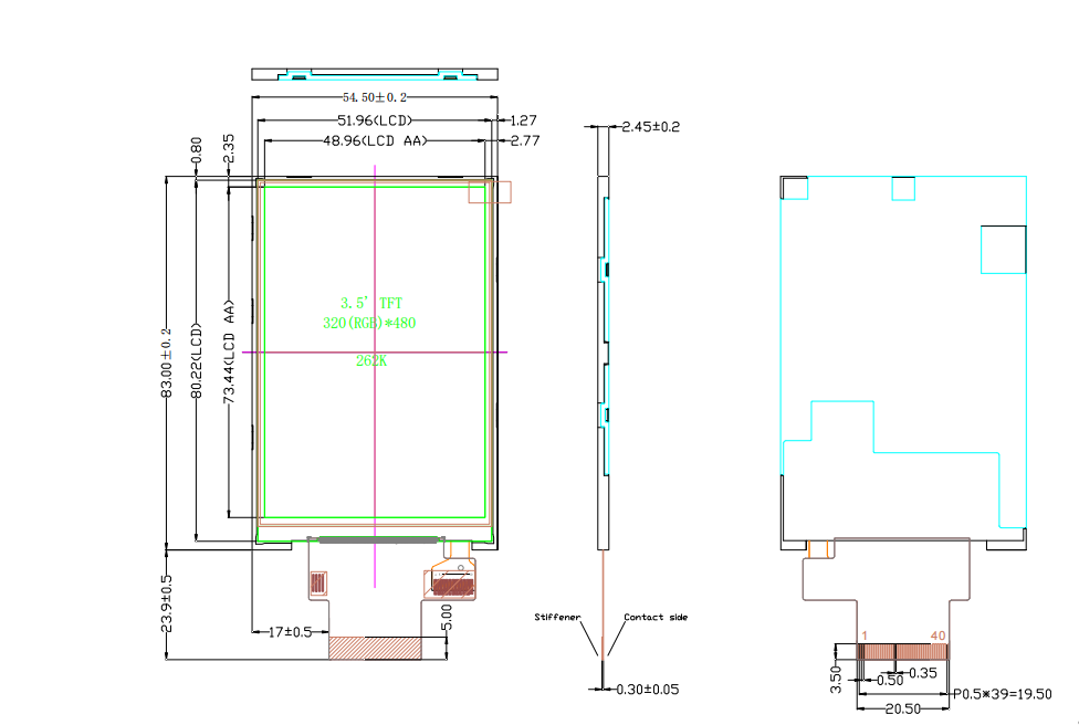 3.5 Inch Portrait TFT LCD Display 500cd/M2 LCD Panel Module 320x480 RGB/MCU Interface Images |